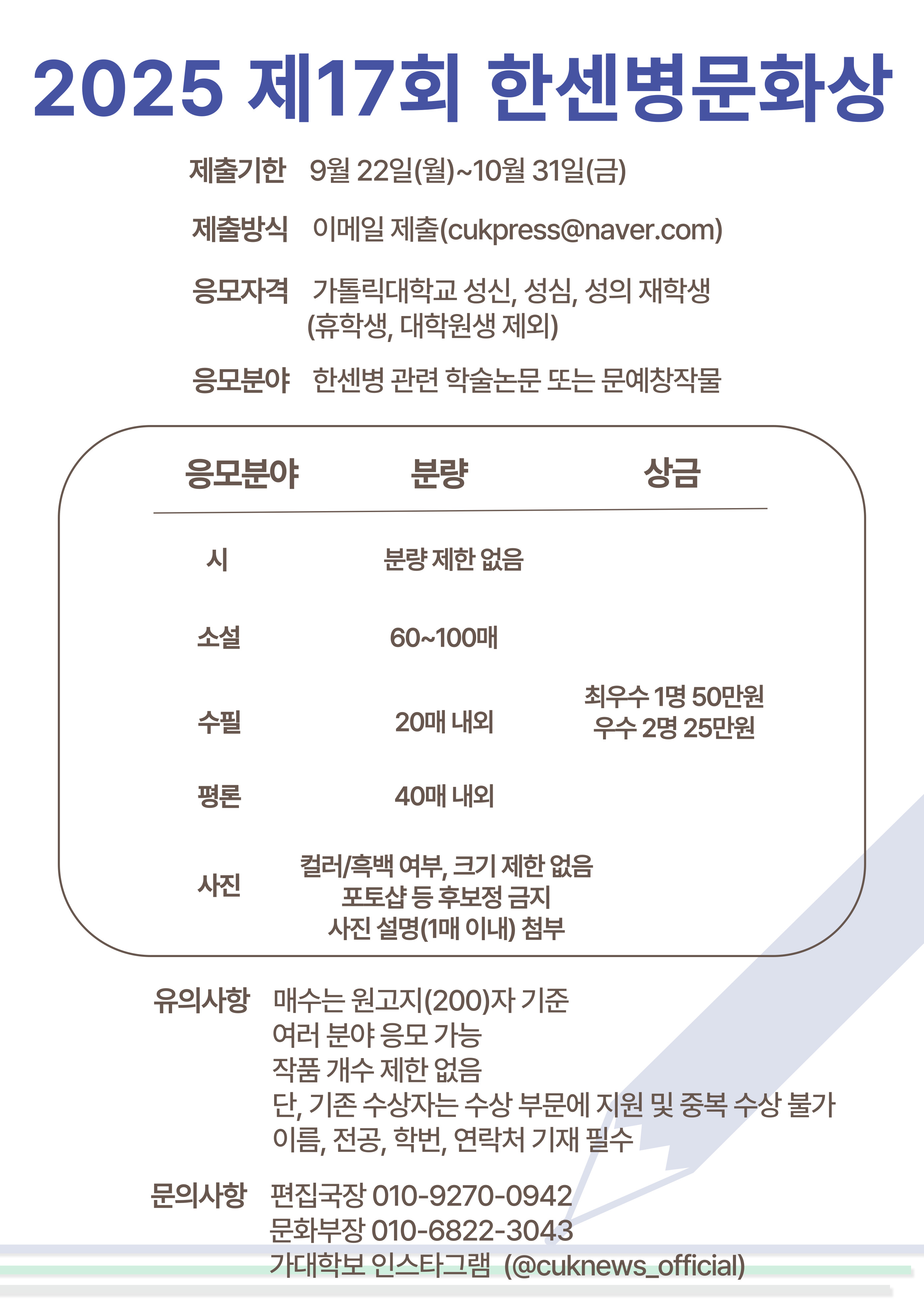 [학보사] 제46회 가대문화상 및 제17회 한센병문화상 공모 안내
