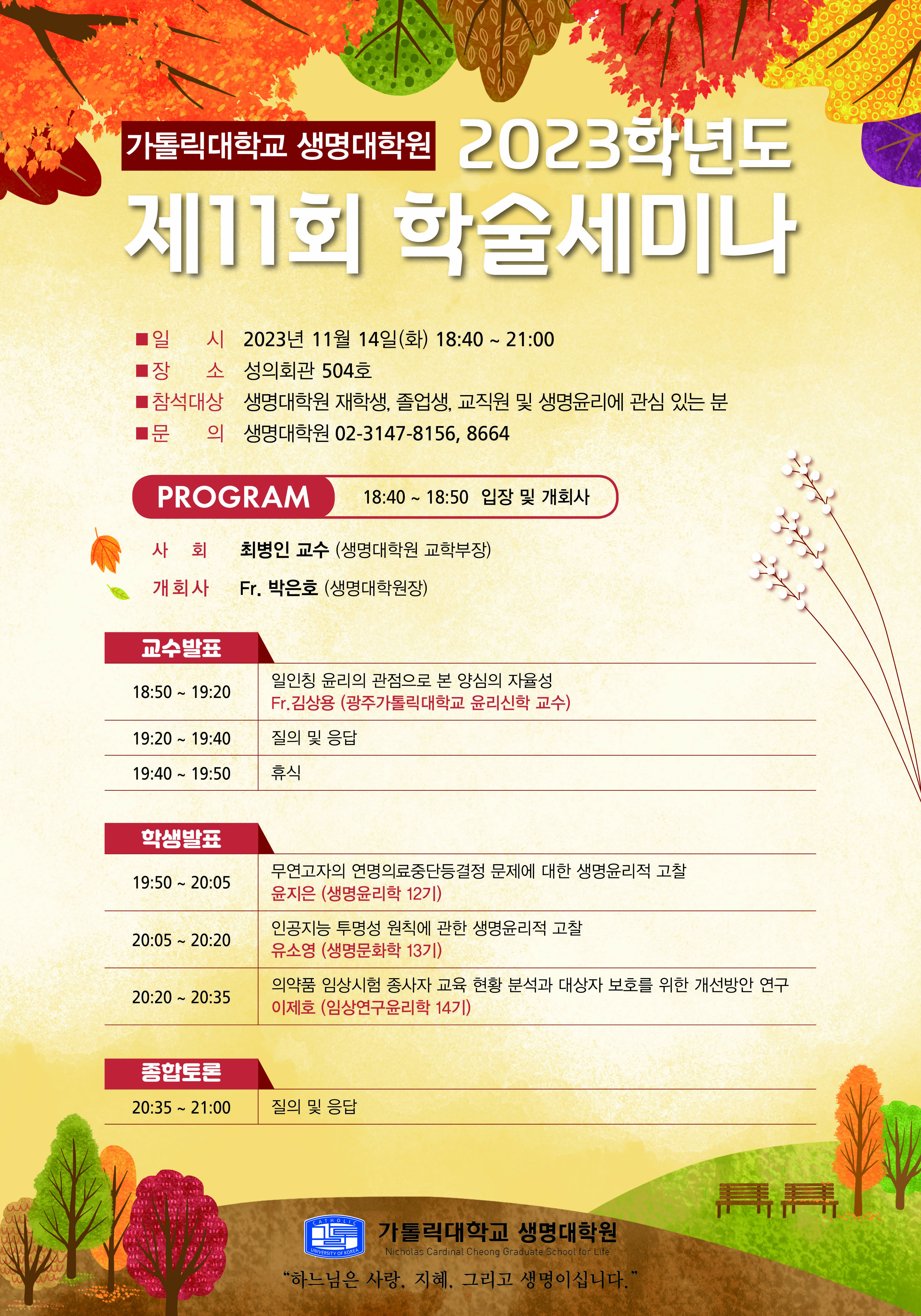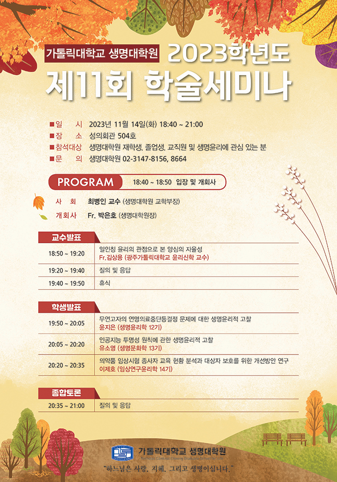 [공지] 가톨릭대학교 생명대학원 제11회 학술세미나 개최 안내