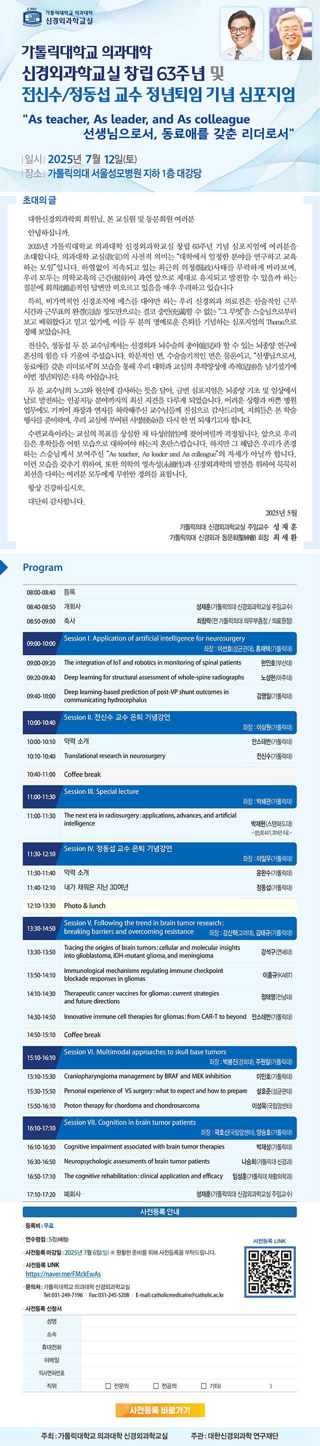 가톨릭대학교 의과대학 신경외과학교실 창립 63주년 및 전신수/정동섭 교수 정년퇴임 기념 심포지엄